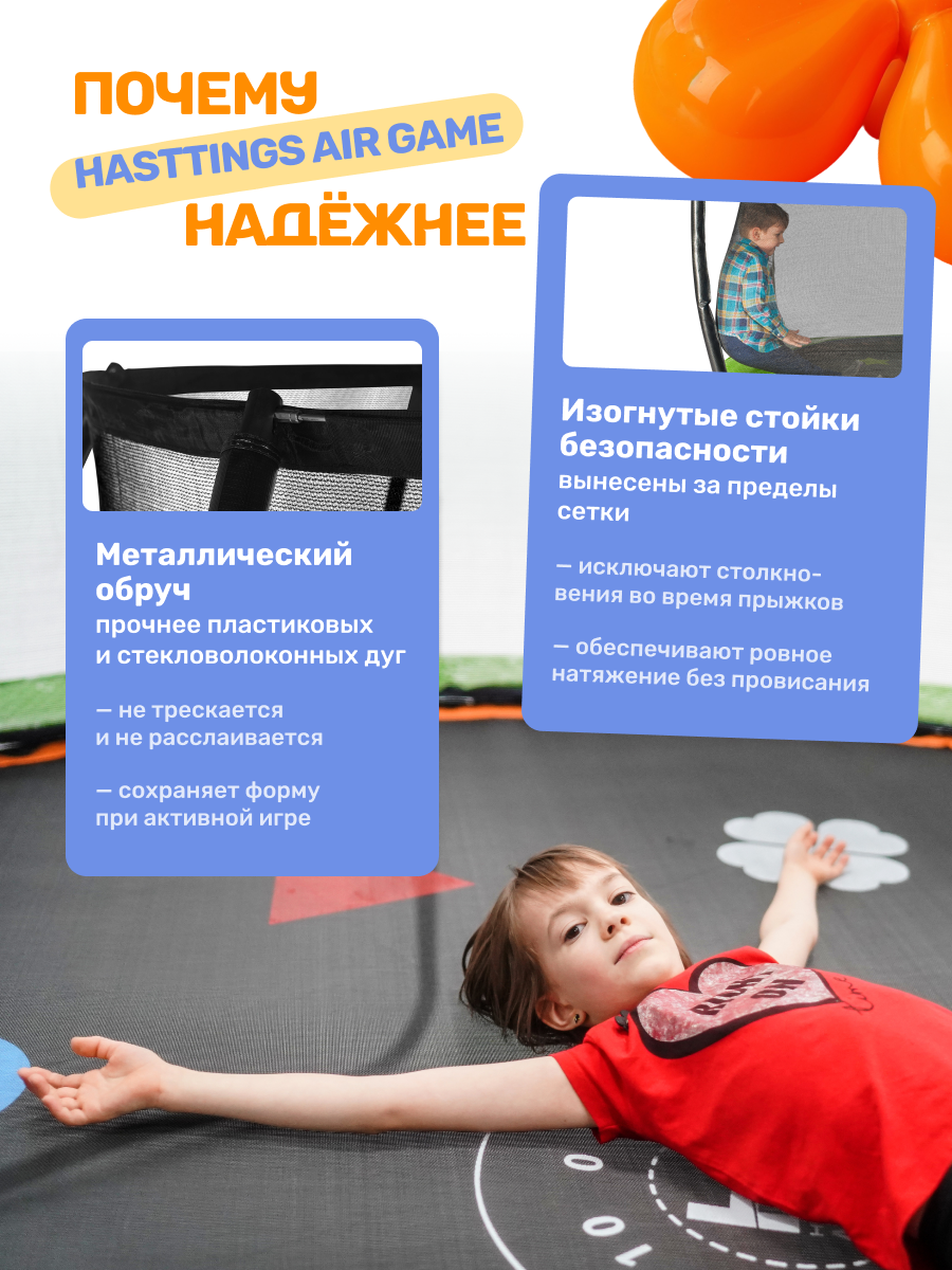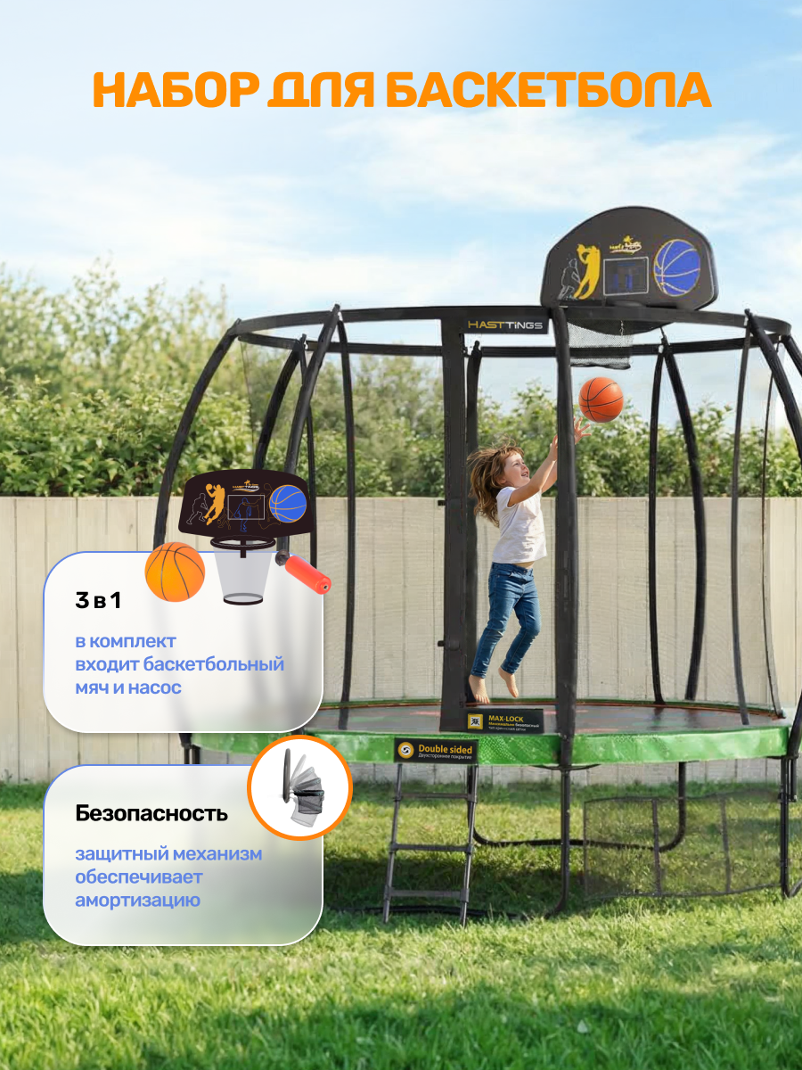 | Наименование | Батут Hasttings Air Game 3,05 м + Сет для баскетбола + Теневой тент | |
