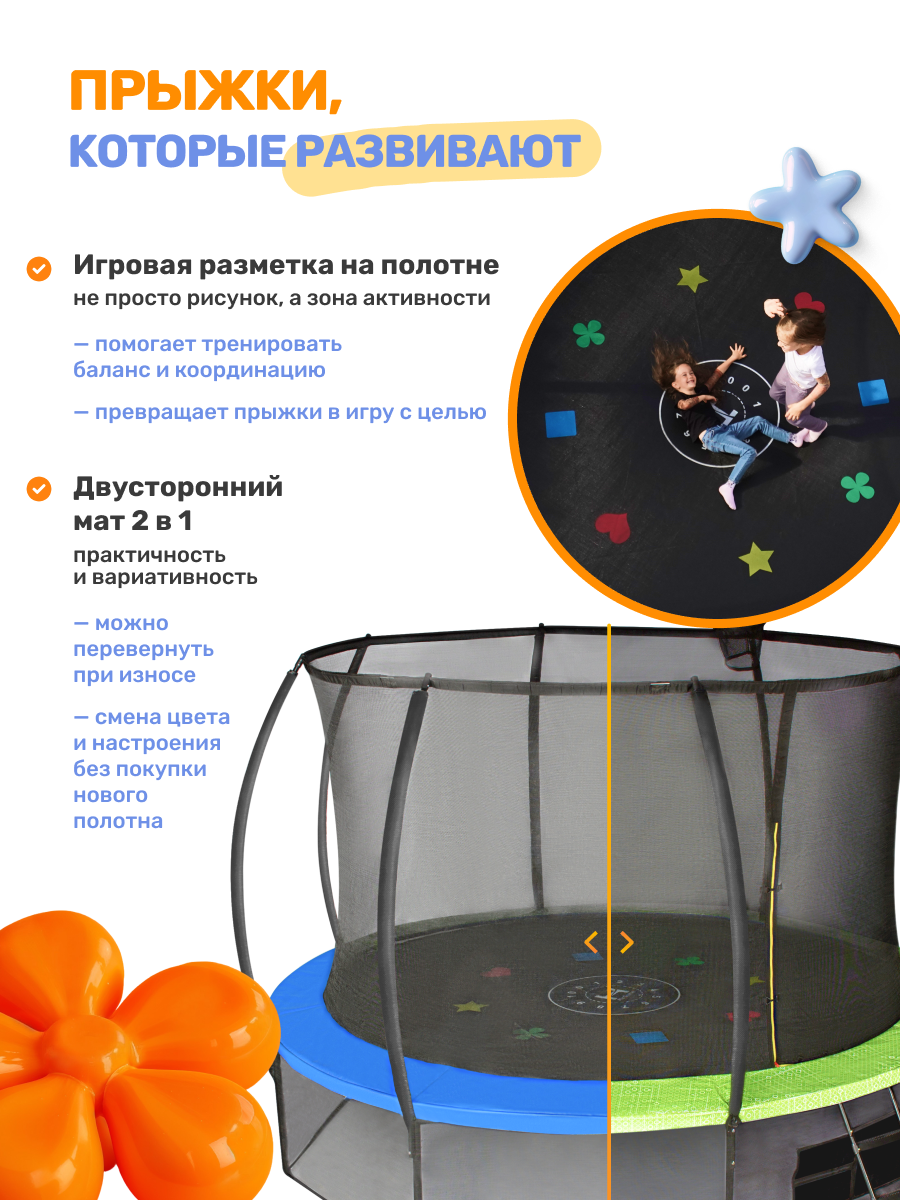 Благодаря двухстороннему защитному мату, вы можете в любой момент сменить стиль Вашего батута!