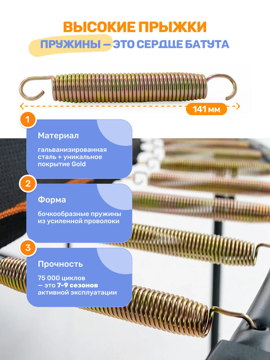 | Каркас батута | Гальванизированная сталь, ⌀38 х 1,5 мм / Гальванизированная сталь, ⌀42 х 1,6 мм | |