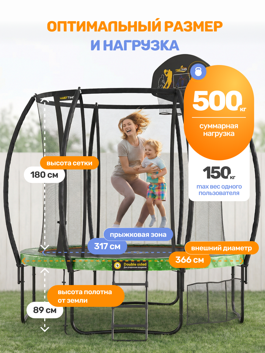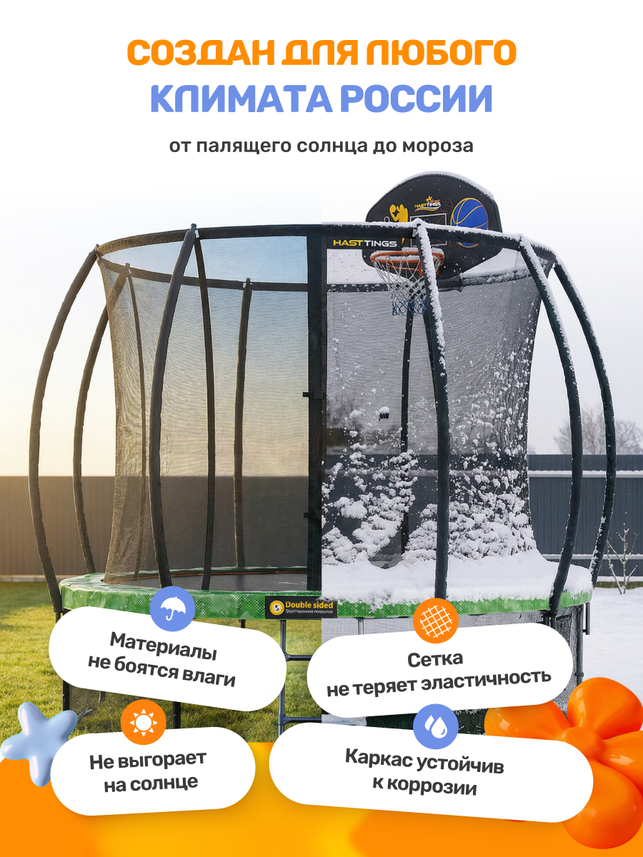 | Наименование | Батут Hasttings Air Game 3,66 м + Сет для баскетбола + Теневой тент | |