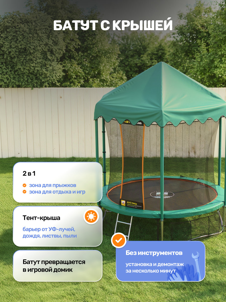 Это надежная защита для вас и ваших детей. Она эффективно ограждает от яркого солнца, проливного дождя и нежелательной листвы или мусора, падающего с соседних деревьев.