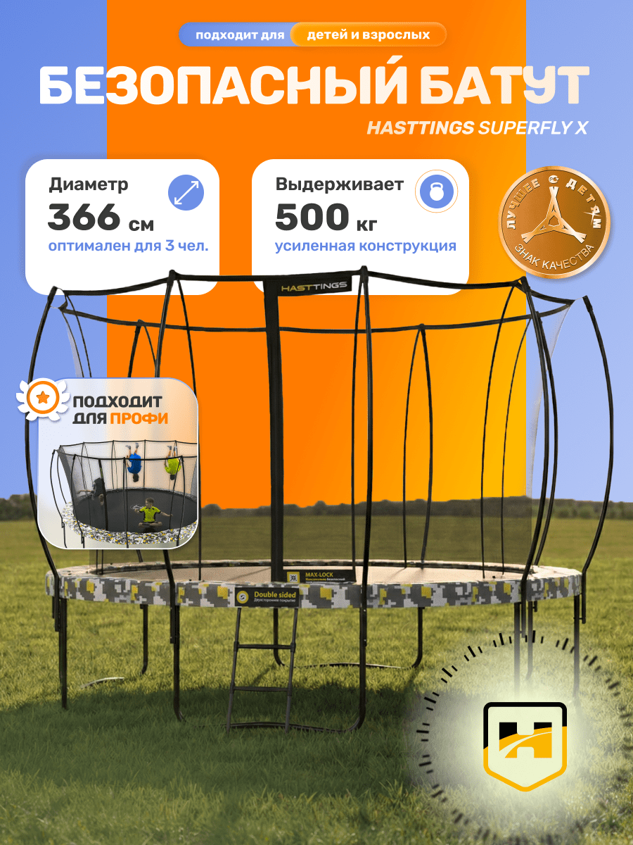Батут Hasttings серии SuperFly признан товаром высокого качества и является обладателем премии "Лучшее детям". Регистрационный номер №11119L1312