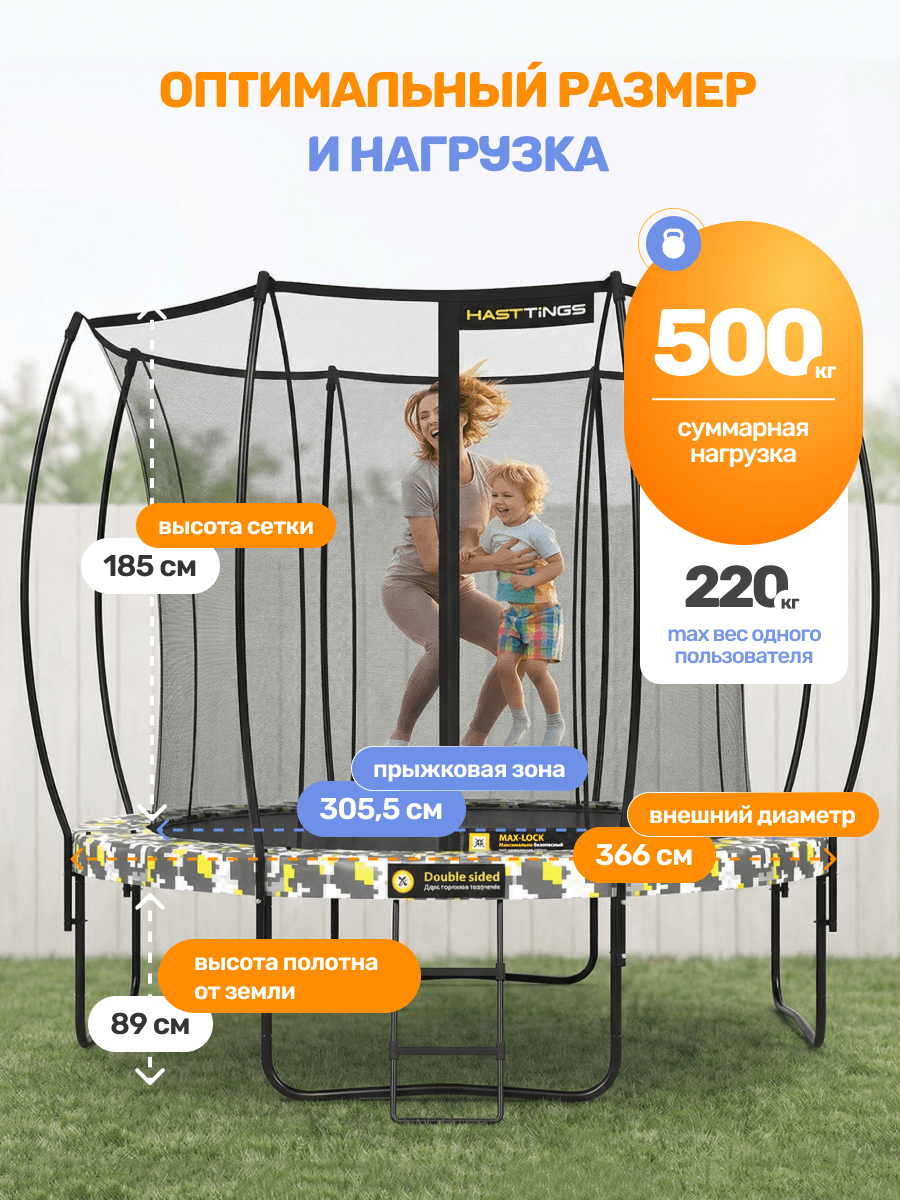 Надежность. Устойчивая рамная конструкция рассчитана на статическую нагрузку до 500 кг. На батуты серии Superfly мы даем 5 лет гарантии на раму. При соблюдении всех рекомендаций производителя, описанных в инструкции, батут прослужит Вам многие годы.