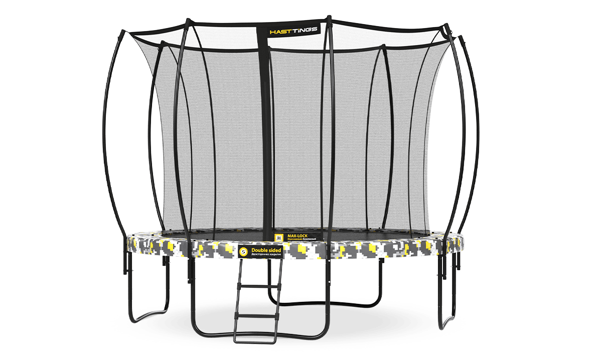 Позволяет менять дизайн батута. В комплекте два цветовых решения: это Digital Como — он же цифровой камуфляж и Black classic или просто классический черный.