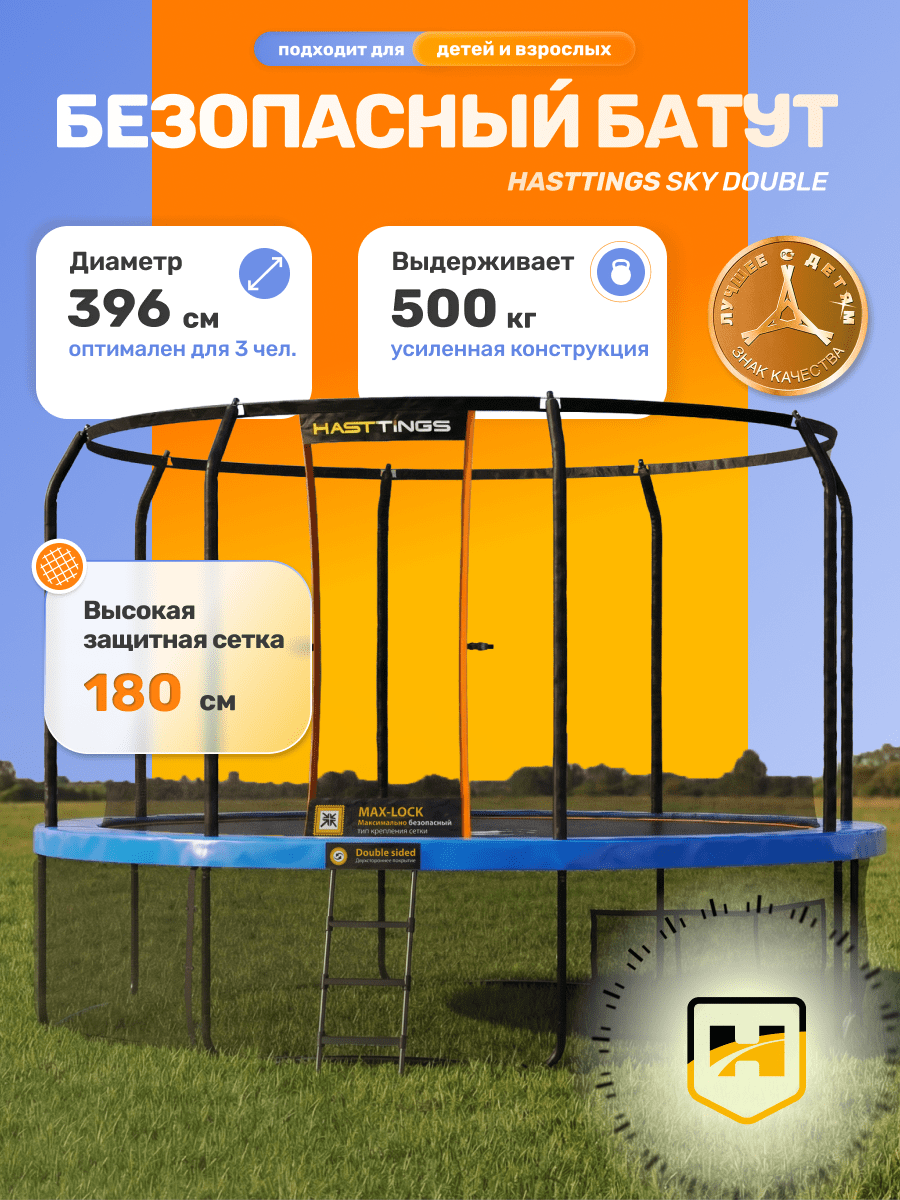 | Наименование | Батут Sky Double с входом на клапане (3,96 м) | |