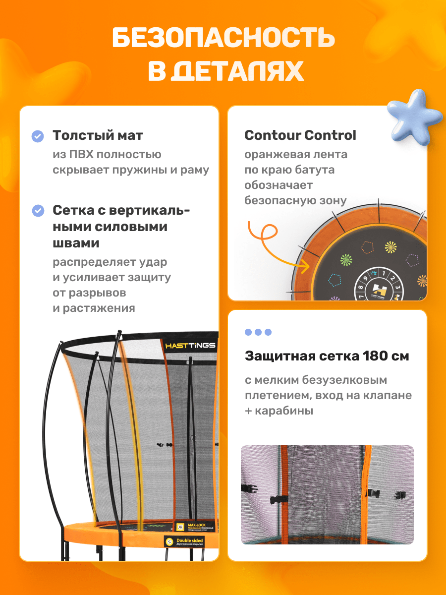 | Contour control | По периметру прыжковой зоны оранжевая лента | |