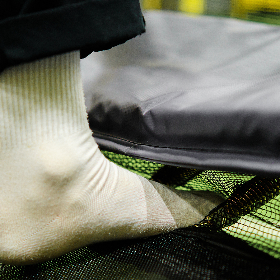 Обычно обивка батута - это единственное, что защищает ваших детей от пружин. К сожалению, иногда они все еще могут дотянуться до них - но не больше! Наша обивка имеет продуманный дизайн и имеет дополнительный сетчатый материал, пришитый непосредственно к подушечкам, а затем прикрепленный к пружинному креплению