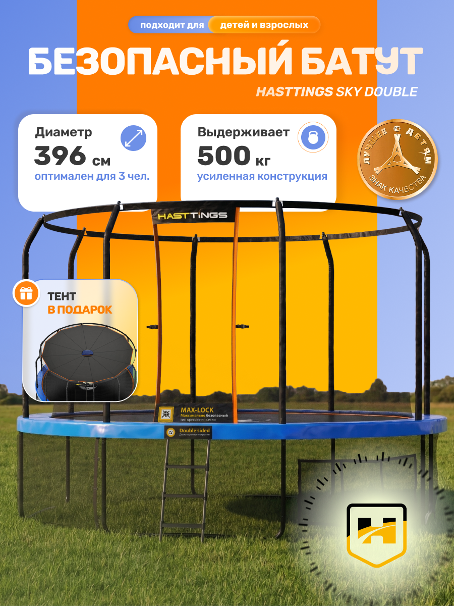 | Наименование | Батут Hasttings Sky double 3,96 + теневой тент | |