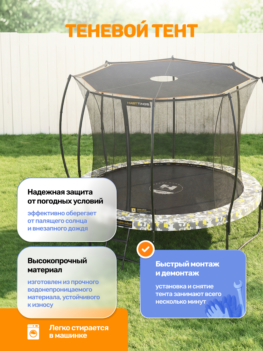 | Наименование | Батут Hasttings Superfly X 14ft + Теневой тент | |