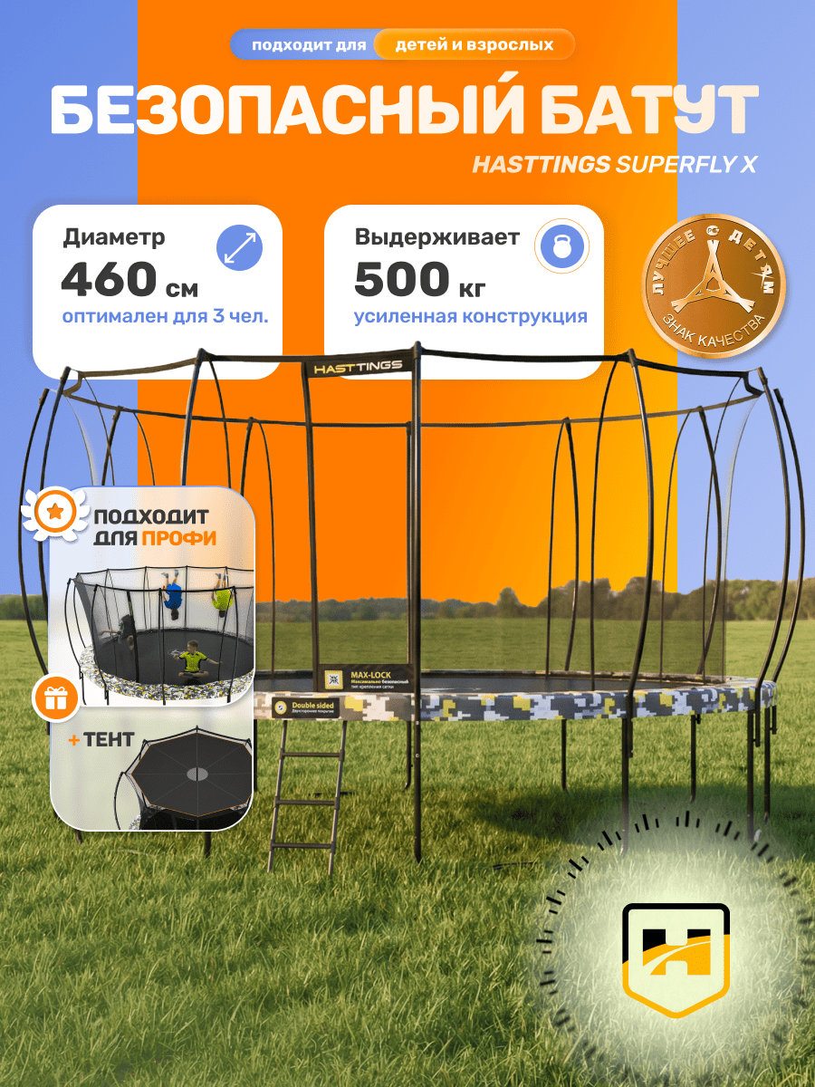 Батут Hasttings серия SuperFly признан товаром высокого качества и является обладателем премии "Лучшее детям". Регистрационный номер №11119L1312