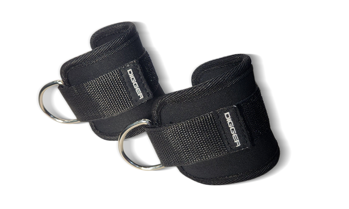 Манжеты на голень предназначены для занятий с силовыми тросами. Специальные накладки защищают от натирания во время тренировок. Удобные застежки-липучки позволяют легко и быстро отрегулировать посадку. На манжетах предусмотрены кольца для крепления тросов. В комплекте 2 штуки.
