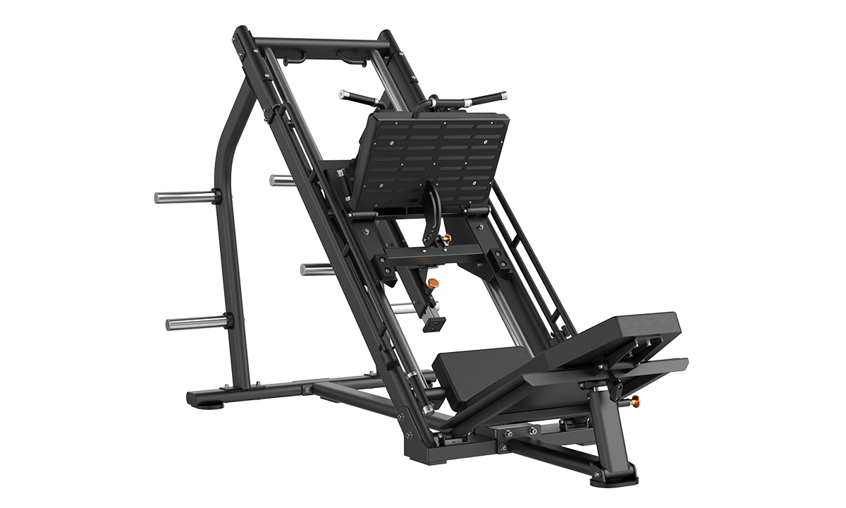 Сопротивление регулируется путем добавления/удаления утяжелителей, максимальный вес составляет 680 кг. Станина наклонена под углом 45 градусов. Переход от одной станции к другой занимает всего пару секунд — вам нужно лишь сложить/развернуть задние опоры с обеих сторон тренажёра, и всё готово.