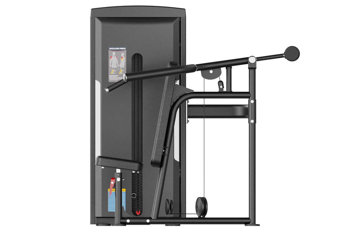 Конструктивные элементы рамы изготовлены из высококачественной стали, покрытых высокопрочной износостойкой двухслойной полимерной краской. Профессиональное силовое оборудование предназначено для проработки передних и средних дельт плеч, трапециевидных мышцы спины, трицепсов рук, верх грудных мышц.