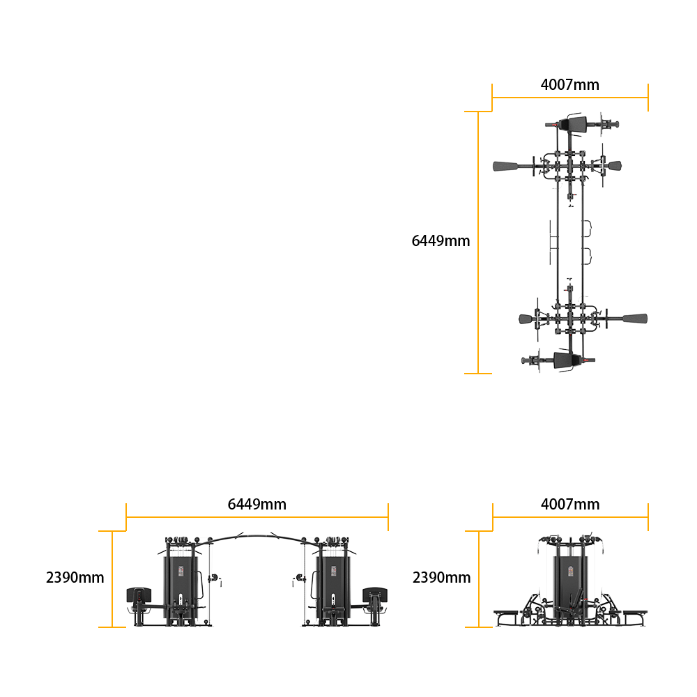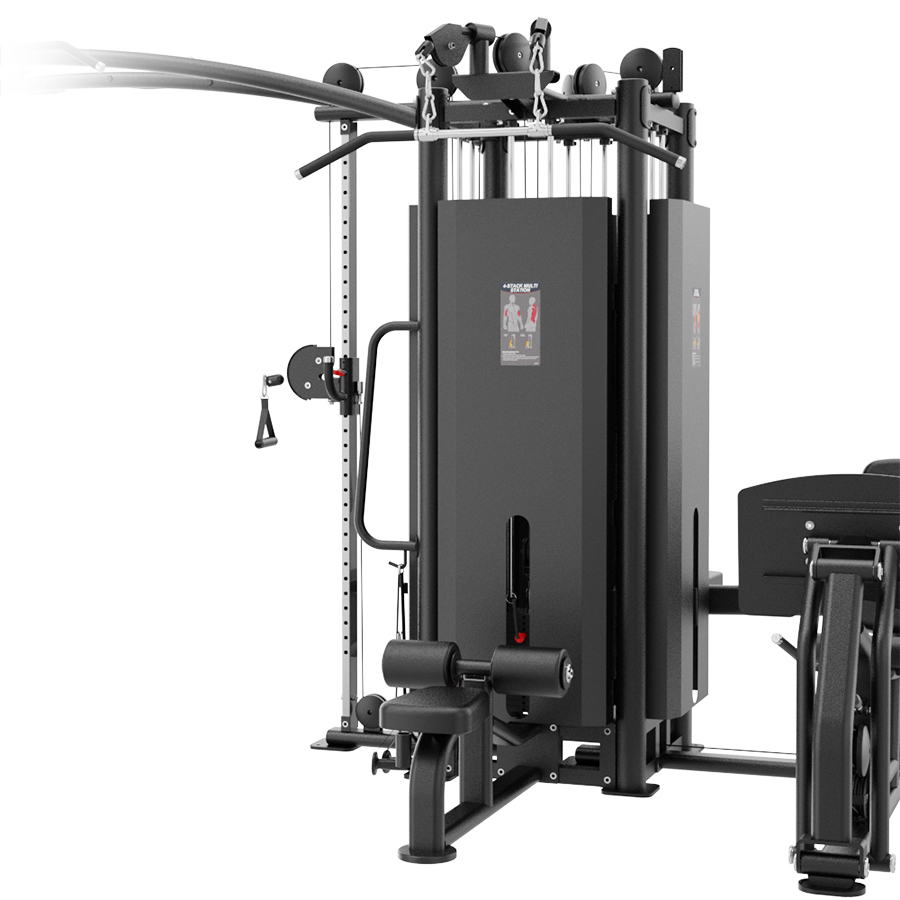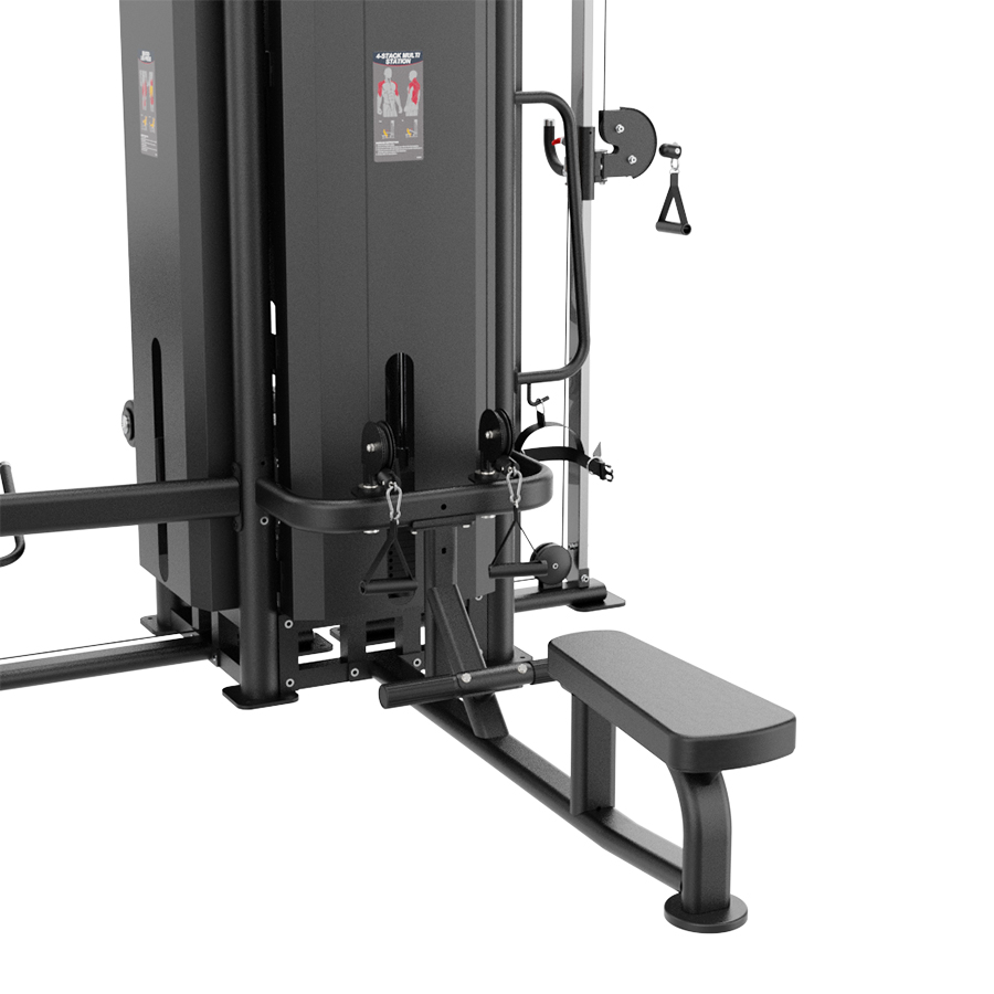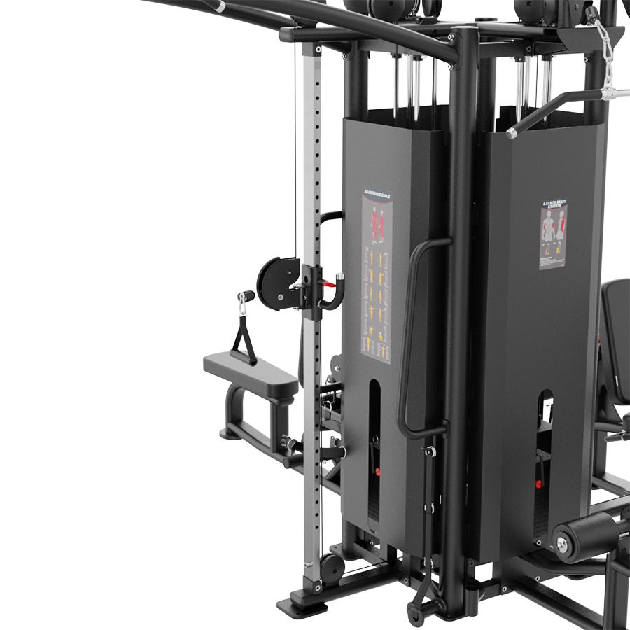 Эта станция оснащена перекладиной для подтягиваний с двойным хватом в верхней части, поддерживает различную ширину и угол хвата для достижения разнообразных целей в тренировке верхней части тела — от развития силы до укрепления мышц кора. Рама с двойным мостом повышает устойчивость конструкции и позволяет двум пользователям тренироваться одновременно, не мешая друг другу. Система с двумя шкивами с возможностью регулировки высоты до 32 положений позволяет выполнять упражнения с тросом на высоте, в середине и внизу с плавным перемещением и точным контролем. Стабилизирующие рукоятки с обеих сторон помогают сохранять осанку во время упражнений для нижней части тела, таких как упражнения для ягодиц или ног, обеспечивая правильную технику выполнения и улучшая работу мышц.
