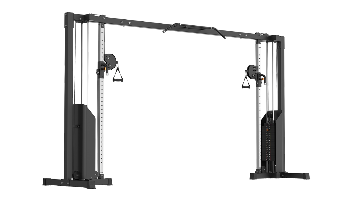 Данный кроссовер относится к моделям профессионального класса и предназначен для коммерческого использования. Функциональные упражнения, выполняемые с помощью этого тренажера, обеспечивают эффективную проработку различных мышечных групп. Двойные тяговые колонны позволяют выполнять упражнения как двумя руками, так и одной, что обеспечивает возможность прорабатывать необходимые группы мышц. Вращающиеся рукояти обеспечивают свободные и естественные движения. На верхней перекладине предусмотрен турник, рукоятки которого позволяют выполнять подтягивания Широким, нейтральным и узким хватом, что позволяет прорабатывать различные группы мышц, акцентируя на них нагрузку. Конструкция кроссовера включает 2 грузовых стека. Удобный выбор нагрузки осуществляется с помощью штифтов.