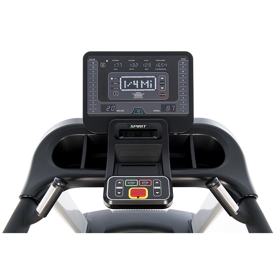Профессиональная беговая дорожка SPIRIT CT850+ Graphite gray создана для интенсивного использования профессиональными спортсменами и начинающими любителями фитнесса. Высокие стандарты качества, надежности, функциональности определяют такие важнейшие характеристики беговой дорожки, как конструктивные элементы рамы, изготовленные из высококачественной стали толщиной 3 мм и покрытых высокопрочной износостойкой двухслойной полимерной краской, двигатель переменного тока мощностью 4.0 л/с, дека, функциональный дисплей увеличенного размера.