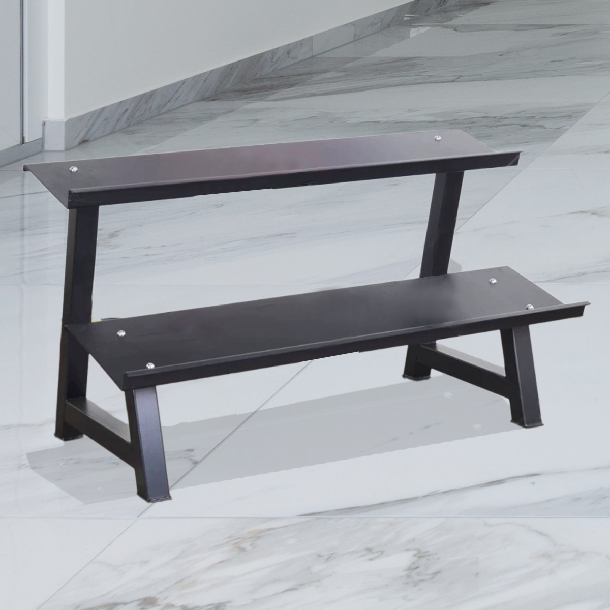 Простая и надежная конструкция фиксирует гантели на своем месте, двухслойное покрытие обеспечивает эстетичный вид и длительную эксплуатацию, дополнительные резиновые накладки на ножки гарантируют сохранность напольного покрытия.