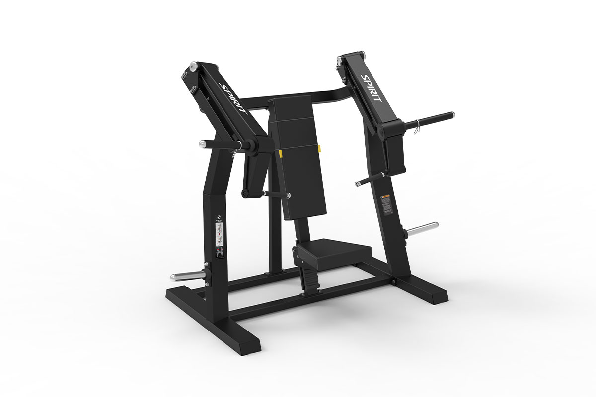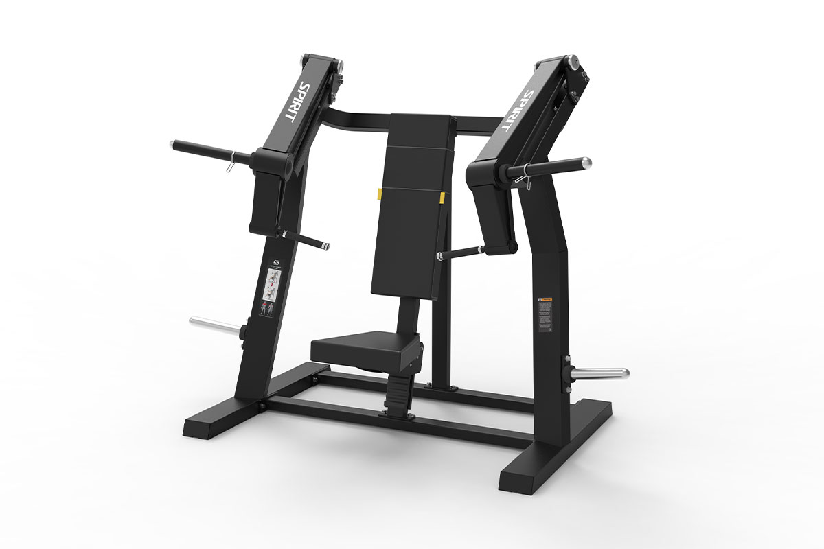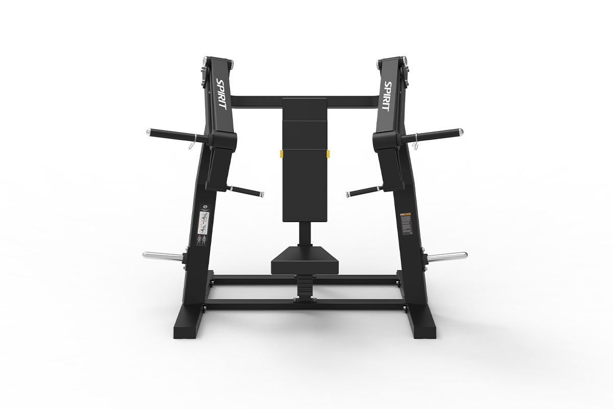 Хорошо заметная отметка на подушке под спину поможет правильно выровнять плечи. Горизонтальные рукоятки позволяют выполнять те же движения, что и на классической скамье. Расположенные в верхней части оси в биомеханическом отношении идеальны при выполнении упражнений на жим. Сиденье легко поднимать и фиксировать.