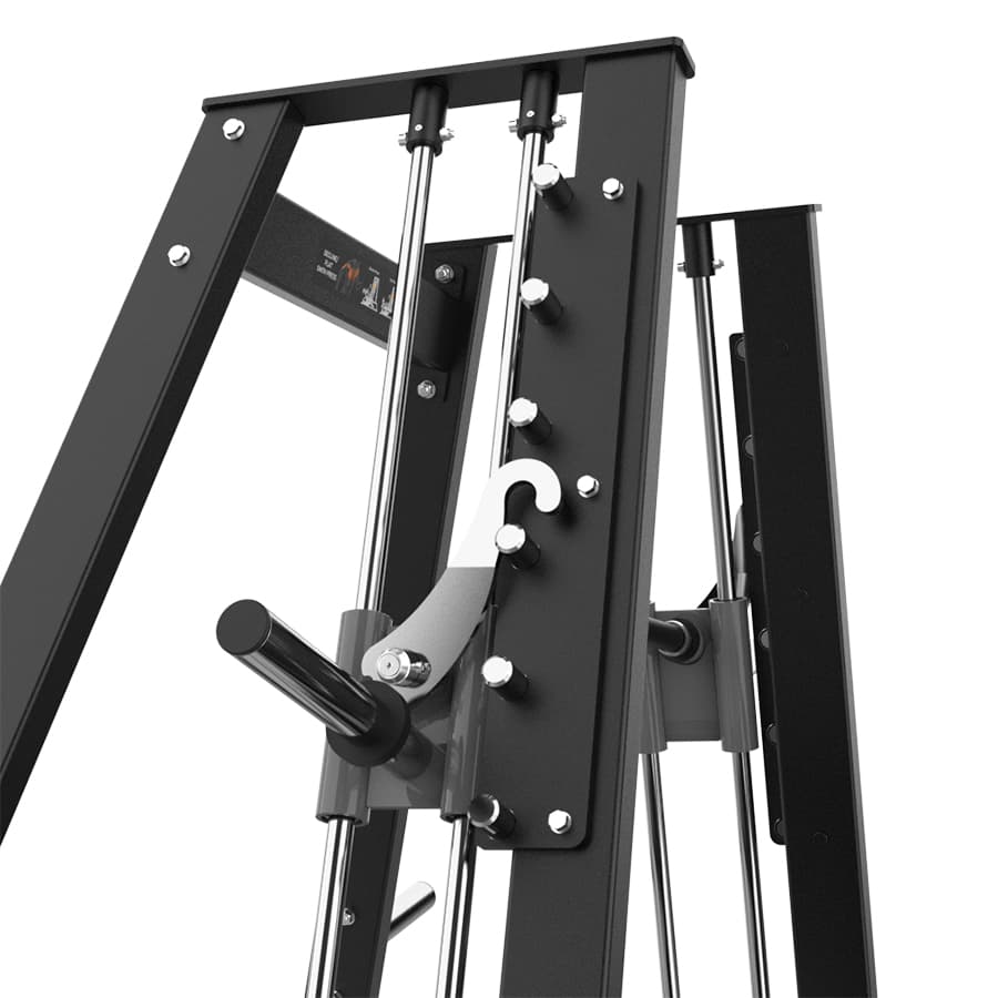 Тренажер поддерживает как горизонтальный, так и наклонный жим, используя систему линейных направляющих, которая обеспечивает плавность и стабильность движений при жиме, а также естественную и эффективную передачу усилия. Сходящийся траектория движения тренажера соответствует естественной ориентации мышечных волокон грудной клетки, обеспечивая более целенаправленную и эффективную стимуляцию.