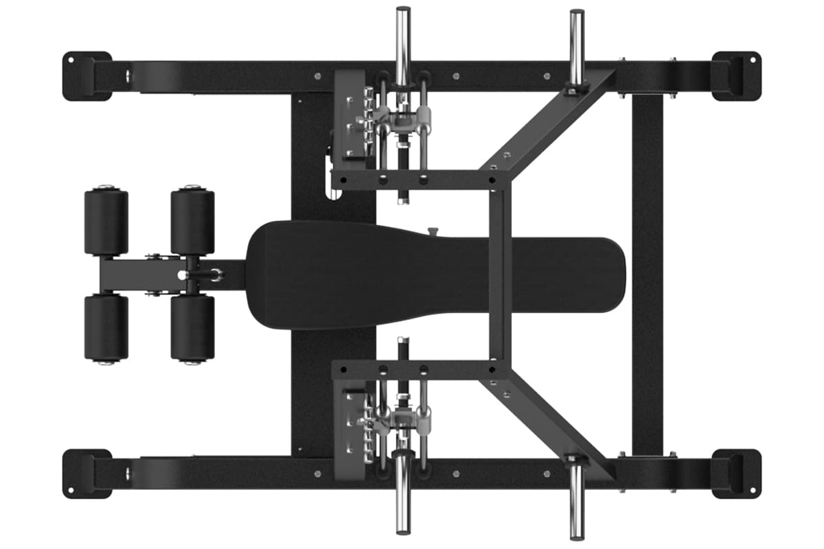Тренажер поддерживает как горизонтальный, так и наклонный жим, используя систему линейных направляющих, которая обеспечивает плавность и стабильность движений при жиме, а также естественную и эффективную передачу усилия. Сходящийся траектория движения тренажера соответствует естественной ориентации мышечных волокон грудной клетки, обеспечивая более целенаправленную и эффективную стимуляцию.
