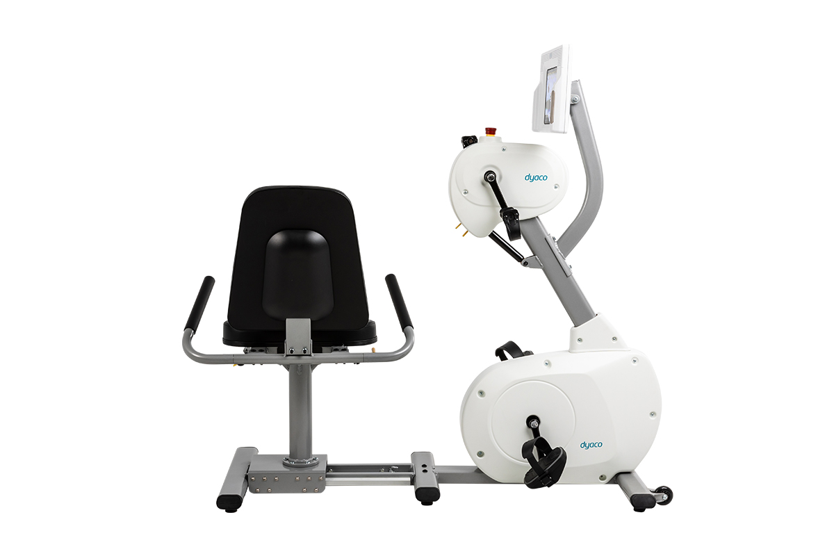 Вращение педалей осуществляется в 2-х направлениях: вперед и назад. Движение по замкнутой цепи обеспечивает отсутствие толчков и минимальный стресс для суставов колена, бедра и голеностопа. Низкая спинка обеспечивает комфорт пациента в горизонтальном положении.