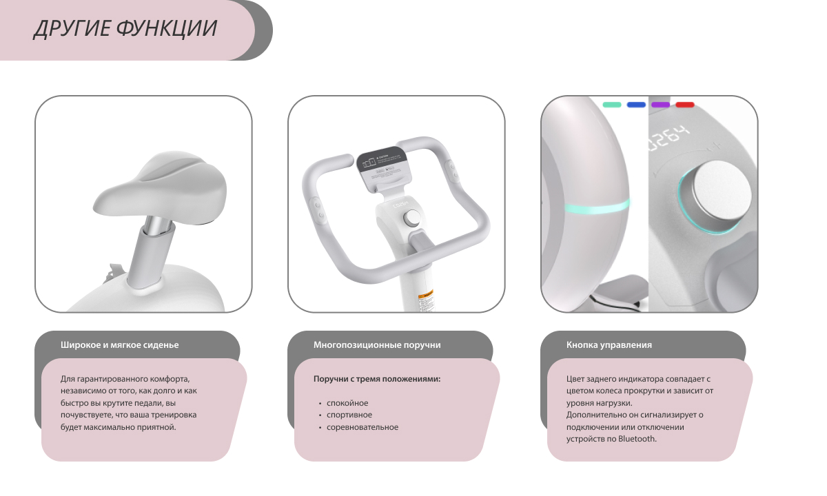 Модель оснащена широким и мягким сиденьем, что гарантирует комфорт, ваша тренировка будет максимально приятной.